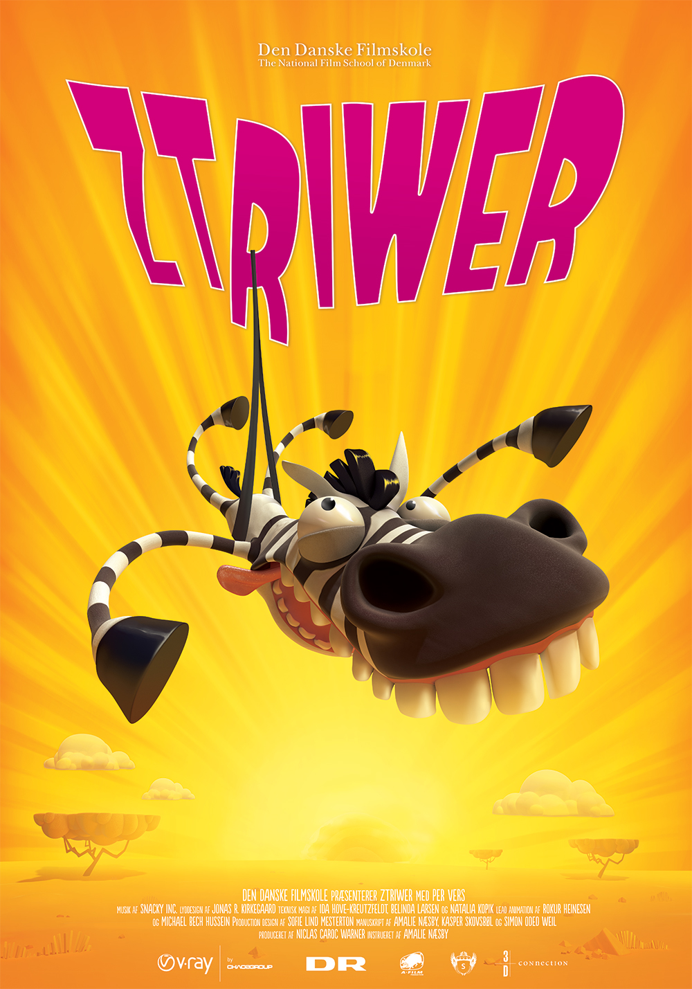 Titlen er jysk og betyder ‘striber’ på aarhusiansk. Det staves selvfølgelig sådan, fordi hovedpersonen er en zebra, der bor på den aarhusianske savanne. Ztriwer er en animationsfilm, der blev lavet som et afgangsprojekt fra filmskolen i 2016.